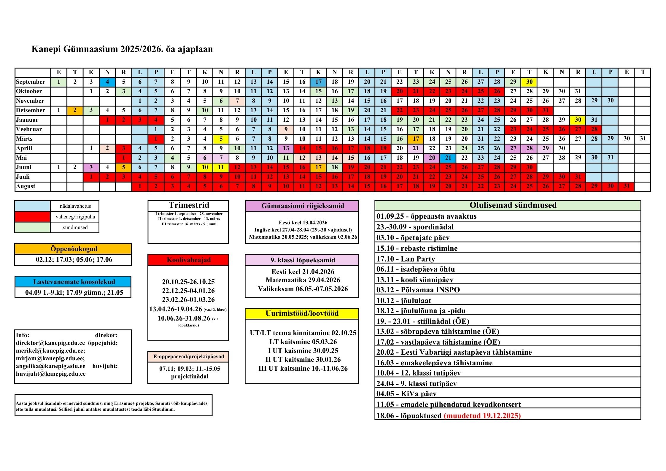 Siit leiad infot kuupäevade, huvitegevuse ja teenuste kohta Kanepi Gümnaasiumis.