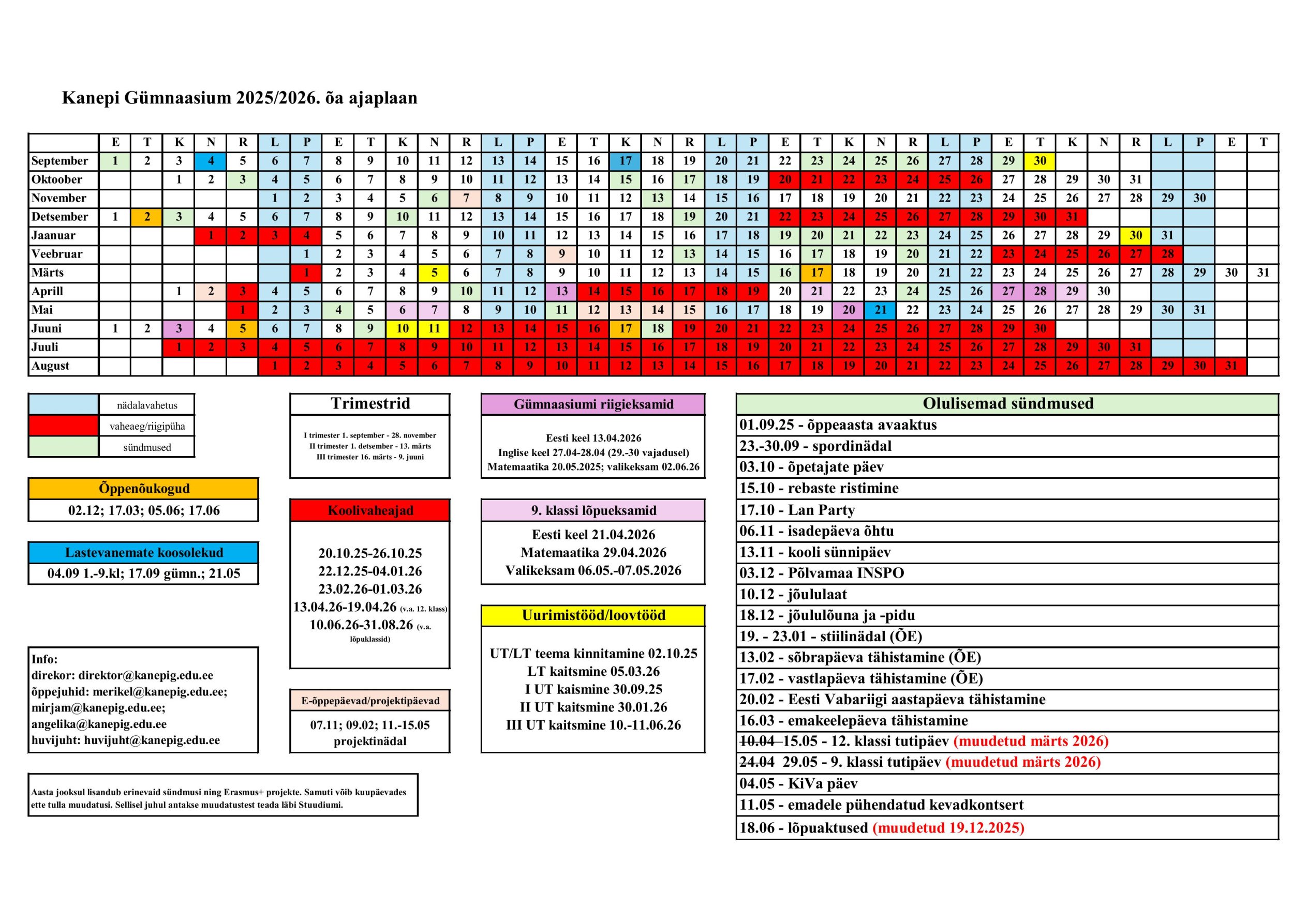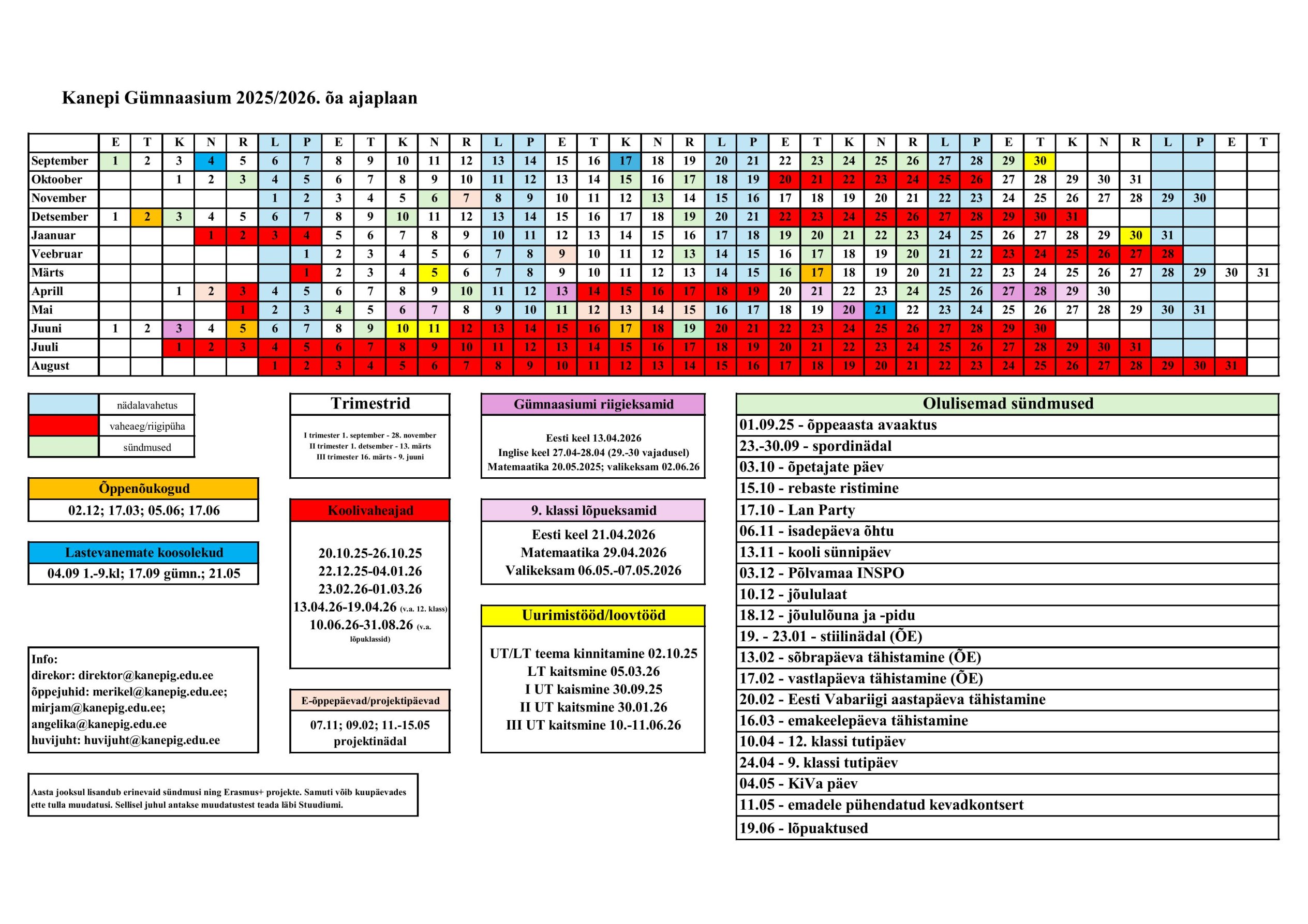 Siit leiad infot kuupäevade, huvitegevuse ja teenuste kohta Kanepi Gümnaasiumis.